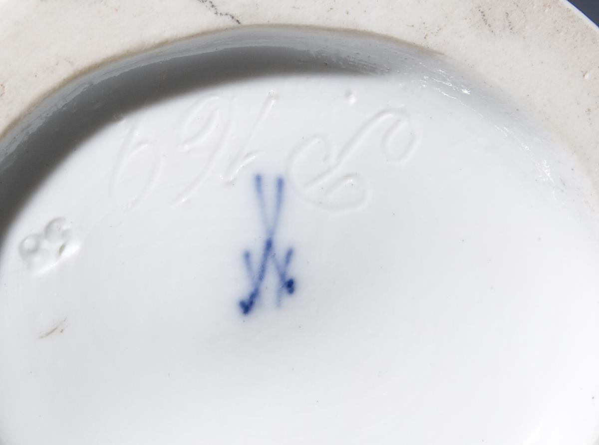 Modell von Gustave Deloy 1895. Farbig bemalt, gold staffiert. Ritzmarke, Pressmarke, Malermarke, Schwertermarke. Blättchen minimal bestoßen.