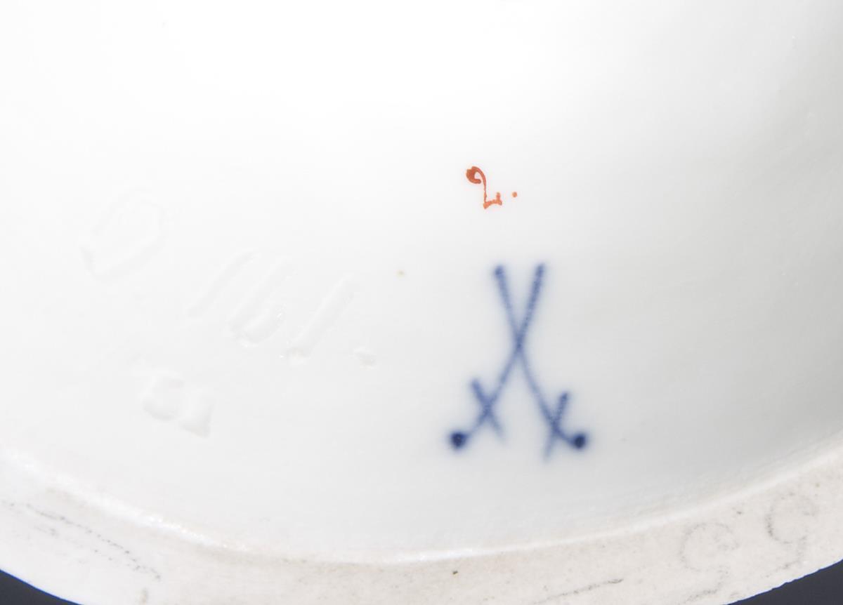 Modell von Albert Georg Eras 1889-1890. Farbig bemalt, gold staffiert. Ritzmarke, Pressmarke, Malermarke, Schwertermarke. Ein Arm, ein Fuß restauriert, ein Finger bestoßen.