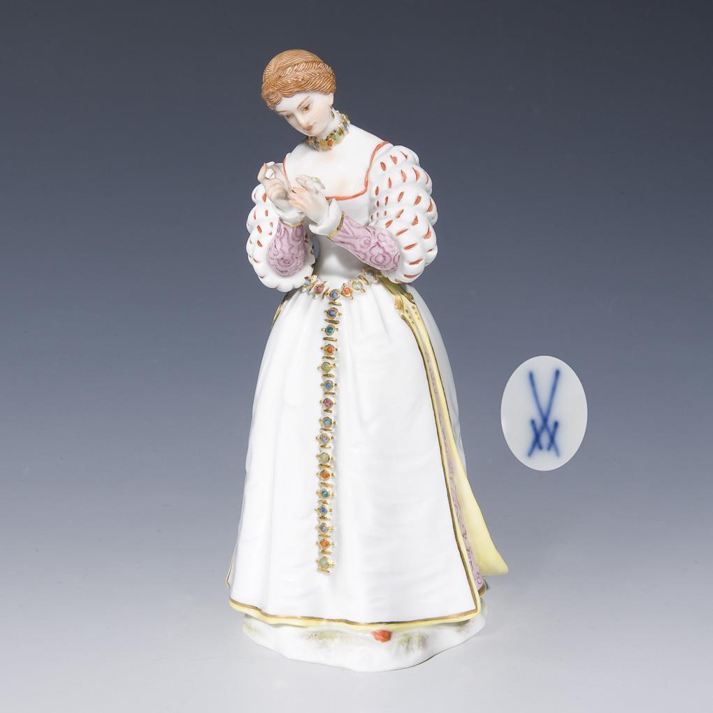 Modell von August Ringler 1899. Aus einer Serie von 12 Figuren. Farbig bemalt, gold staffiert. Ritzmarke, Pressmarke, Schwertermarke.