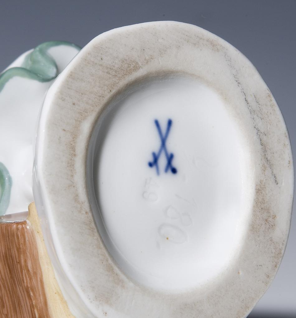 Modell von Paul Helmig 1908. Farbig bemalt. Ritzmarke, Pressmarke, Schwertermarke.