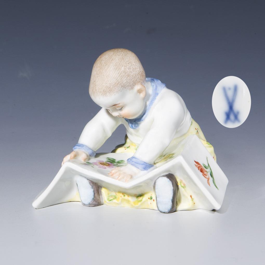 Jugendstil-Figur: Kind mit Bilderbuch. Meissen.