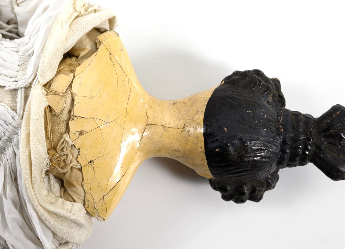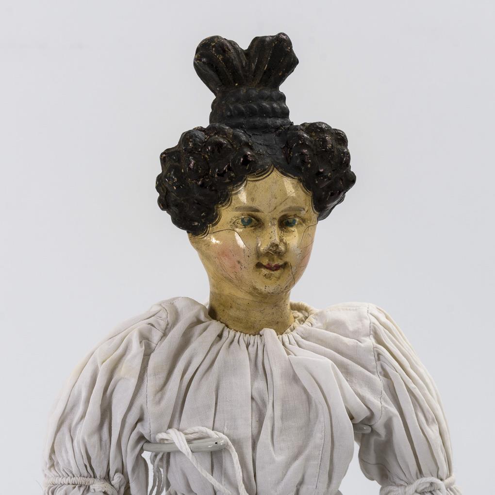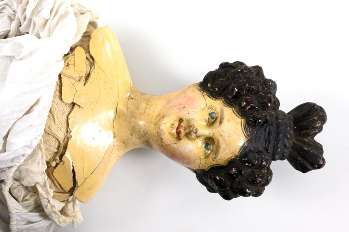 Diese Puppe zeigt große Ähnlichkeiten zu den Köpfen, die auf den Musterblättern von Johann Daniel Kestner jun. um 1830 dargestellt sind