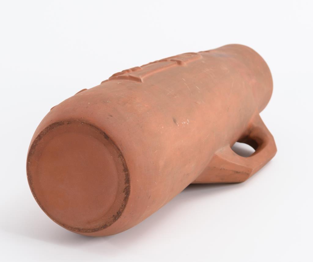 Roter Ton, innen weiß glasiert.H 40,5 cm.