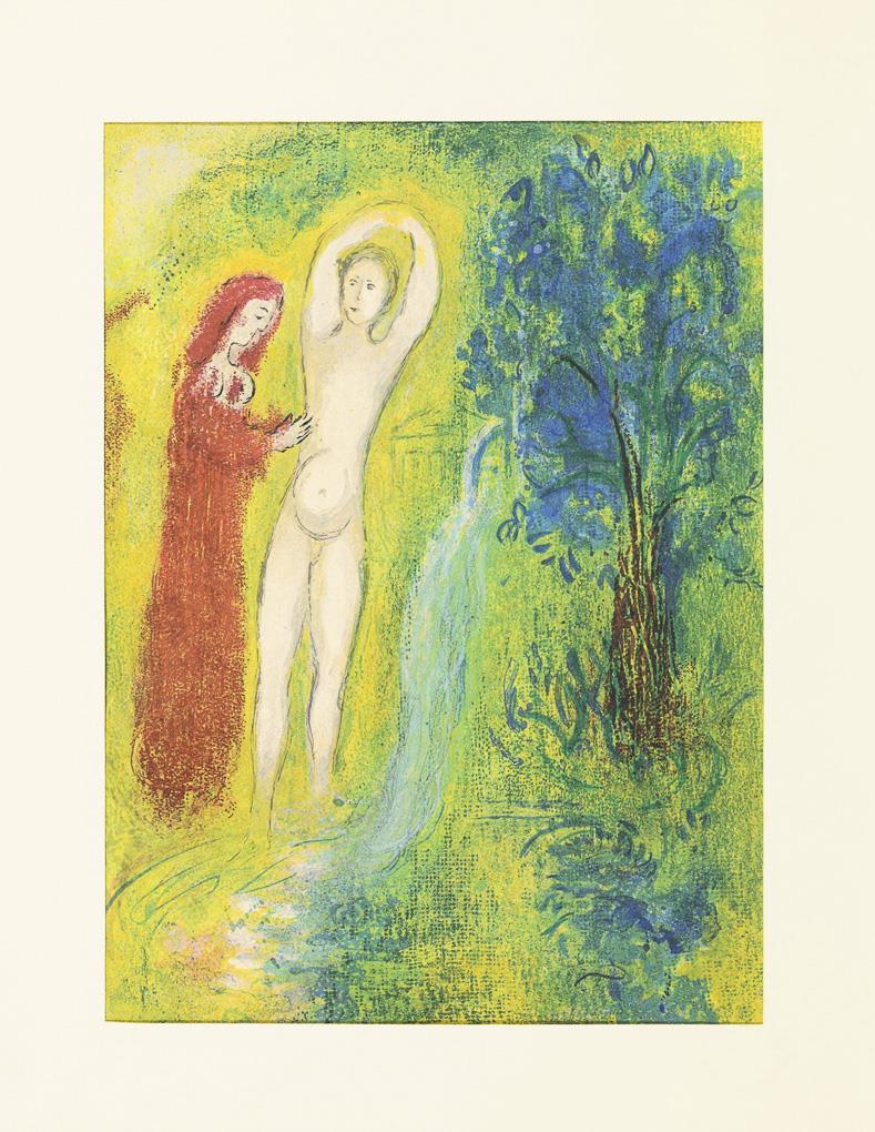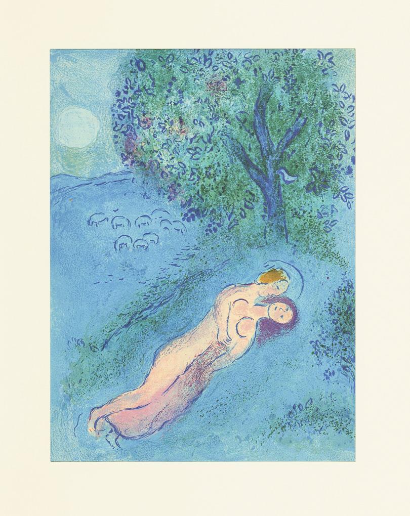 3 Illustrationen aus "Daphnis und Chloe": "Lamon findet Daphnis", vgl. Gauss (1998), WVZ Nr. 309, S. 141, "Die Lehre des Philetas", vgl. Gauss (1998), WVZ Nr. 323, S. 155, "Daphnis und Chloe an der Quelle", vgl. Gauss (1998), WVZ Nr. 313, S. 145; Braziller New York 1977 und 1 Illustration aus "Arabische Nächte": "Planche 10 de l'Album", vgl. Gauss (1998), WVZ Nr. 45, S. 66; Prestel München 1987.