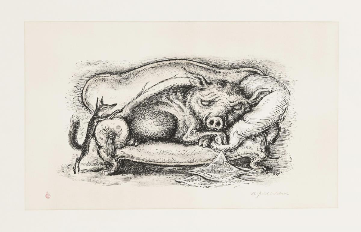 Lithografie auf Bütten. Im Druck signiert, verso violetter Stempel "Nachlass A Paul Weber" mit Bleistiftsignatur "Christian Weber", roter Stempel "Clan-Presse". [1974?].