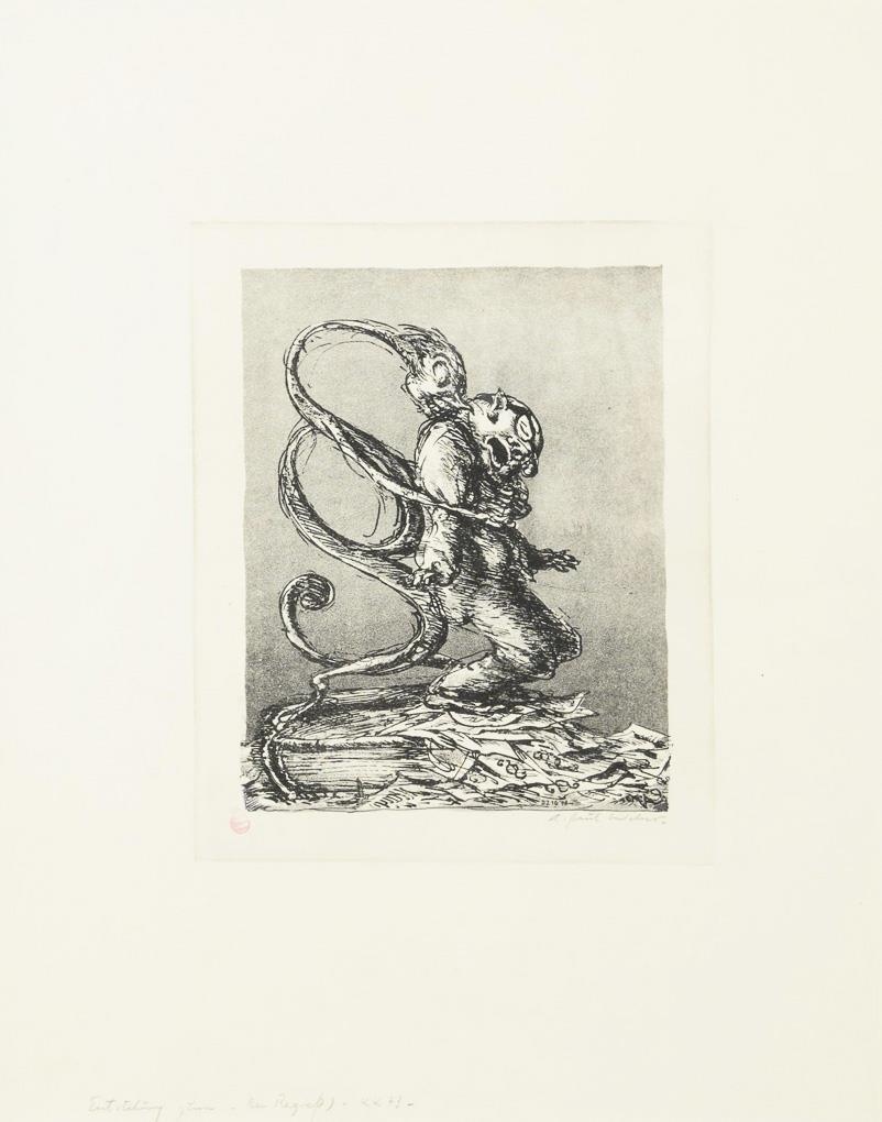 Lithografie. Bleistiftsignatur, roter Stempel "Clan-Presse". [1971].