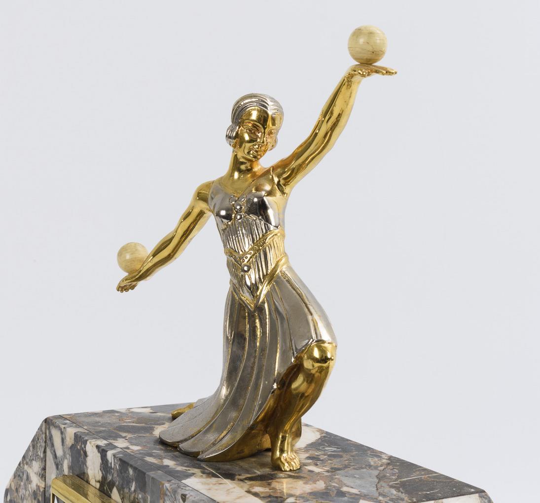 Uhrengarnitur mit Art-déco-Kugeltänzerin.