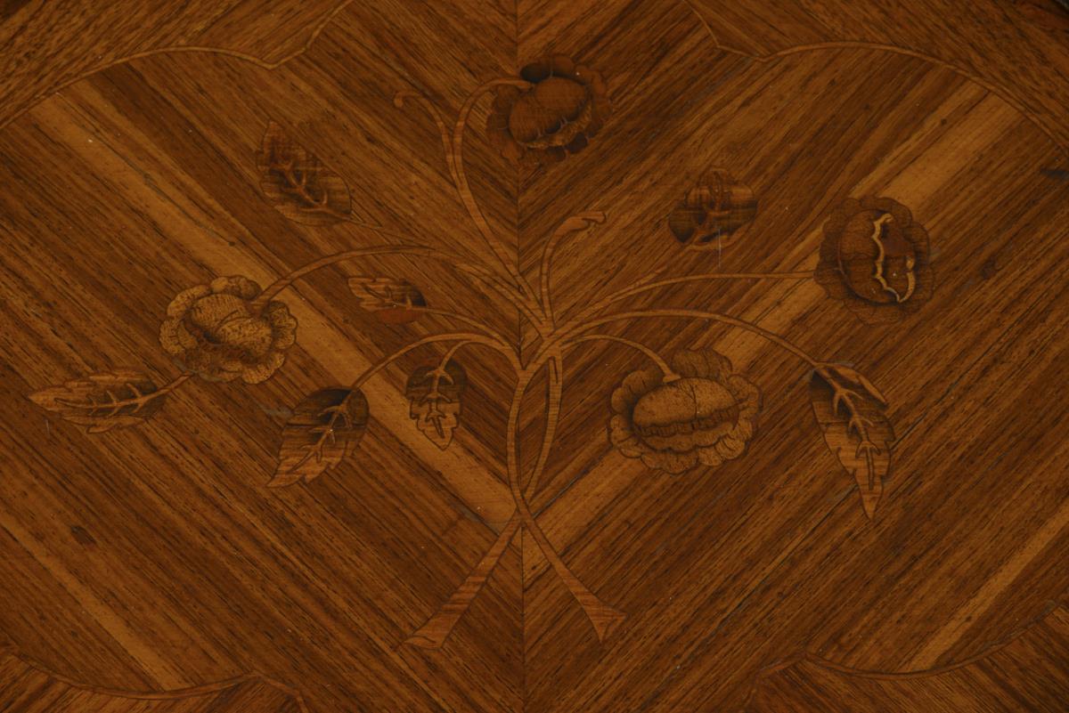 Rosenholz furniert, verschiedene Hölzer marketiert. Ca. 68 x 41 x 33,5 cm.
