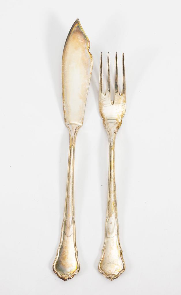 Silbernes Fischbesteck für 6 Personen. Hanseatische Silberwarenfabrik, Bremen.