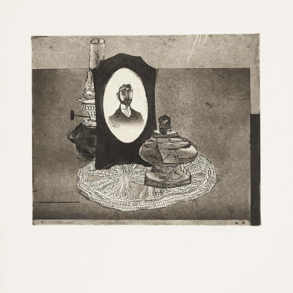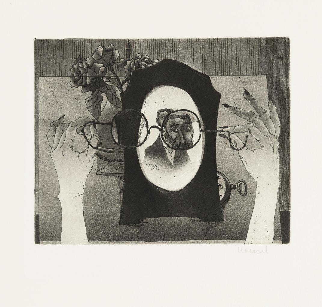 Selbstbildnis mit Brille, Druckplatte: 23,5 x 29 cm, Blatt: 63,5 x 45 cm | Selbstbildnis mit Flakon, Druckplatte: 25 x 29,5 cm, Blatt: 63,5 x 45 cm | Selbstbildnis mit Petroleumbrenner, Druckplatte: 39,8 x 28 cm, Blatt: 60 x 47 cm, etwas fleckig.