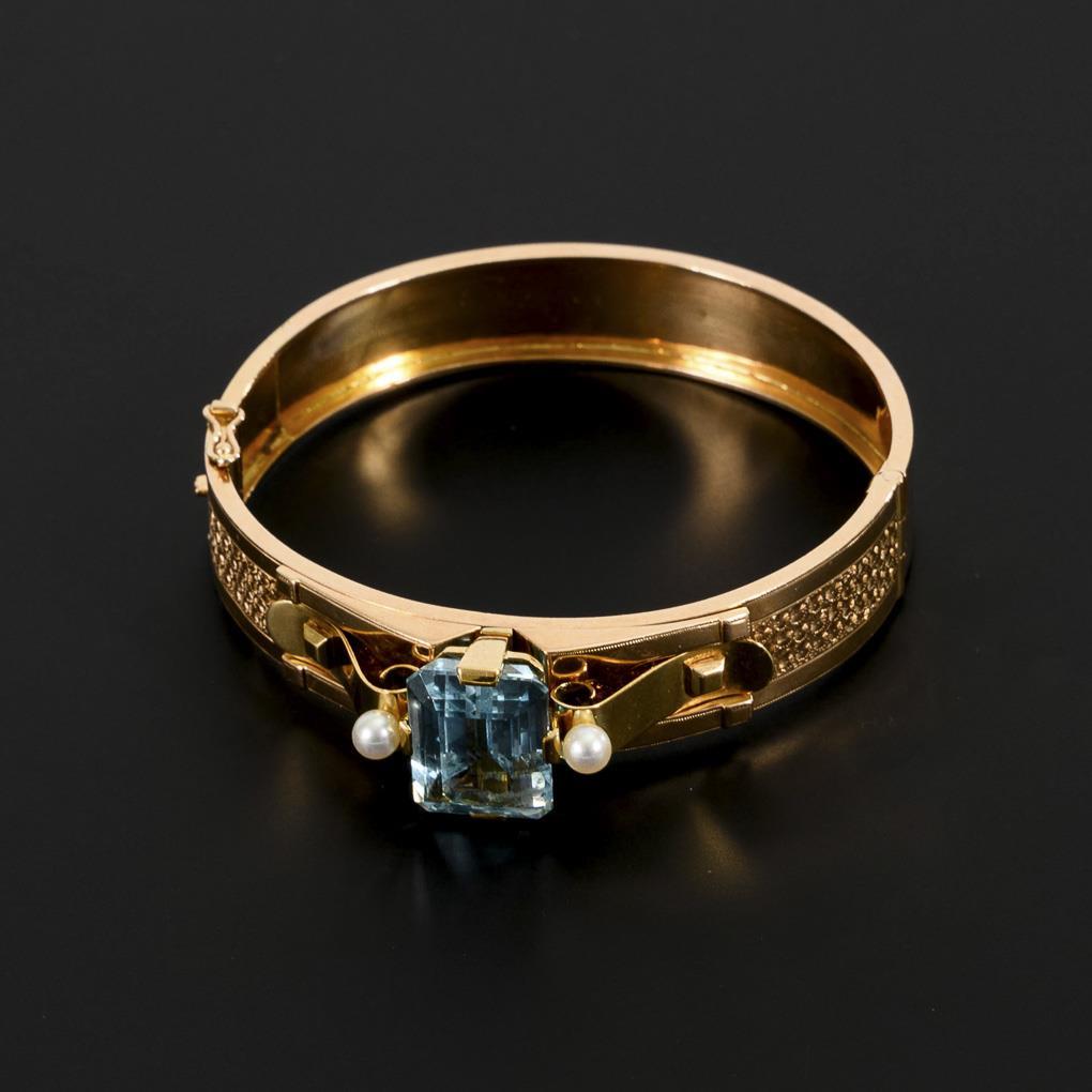 Exquisiter Art-déco-Armreif mit Aquamarin und Zuchtperlen.