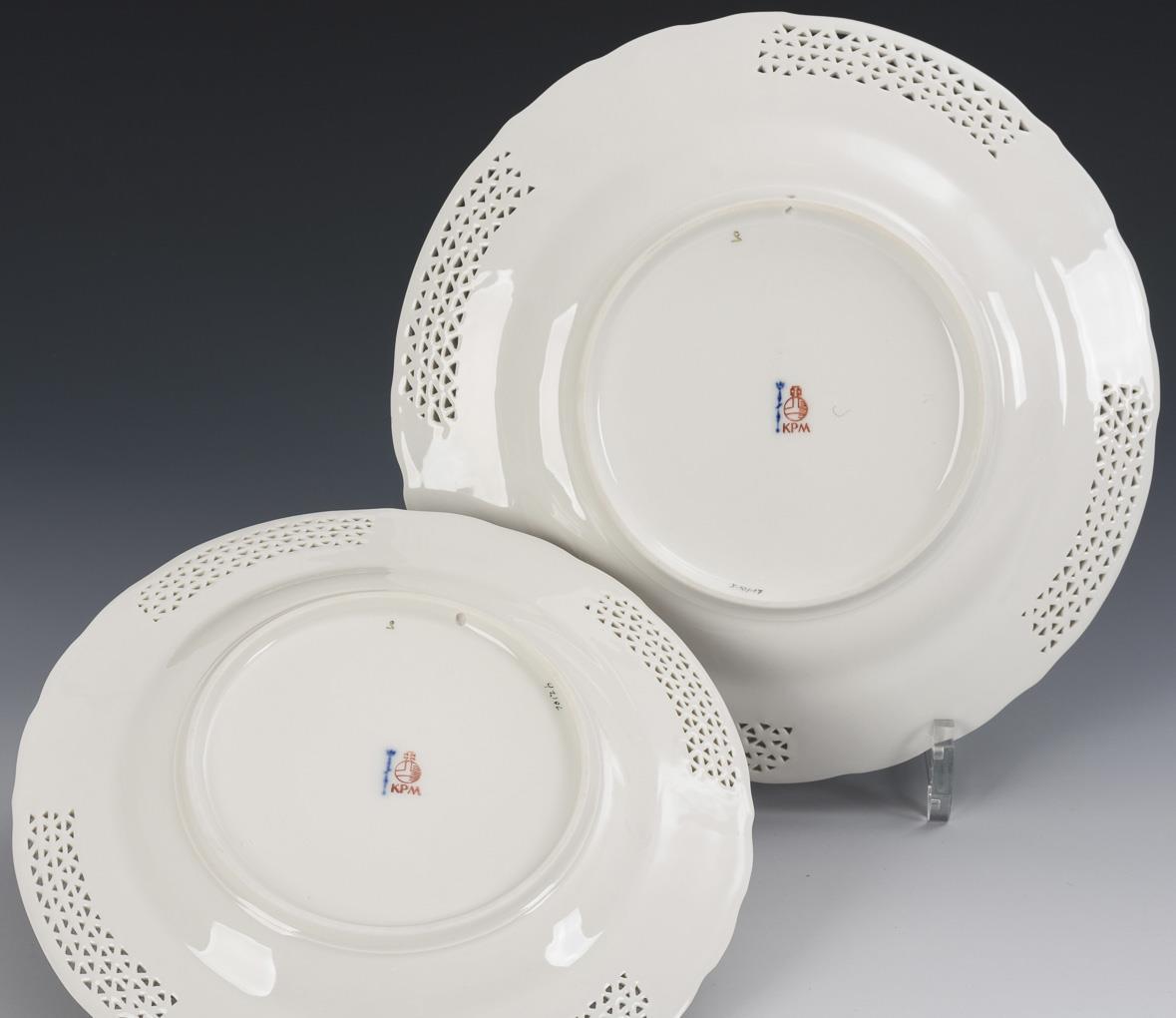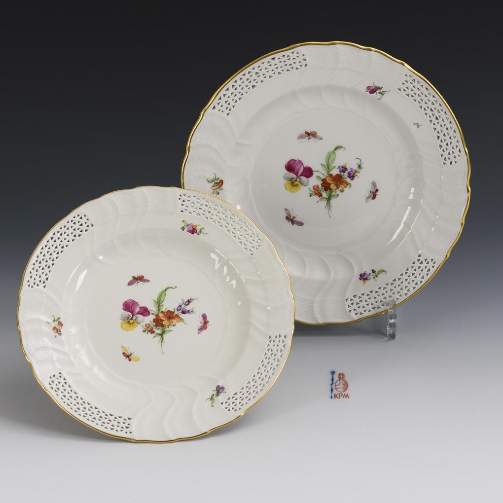 2 Dessertteller mit Blumen- und Insektenmalerei. KPM Berlin.