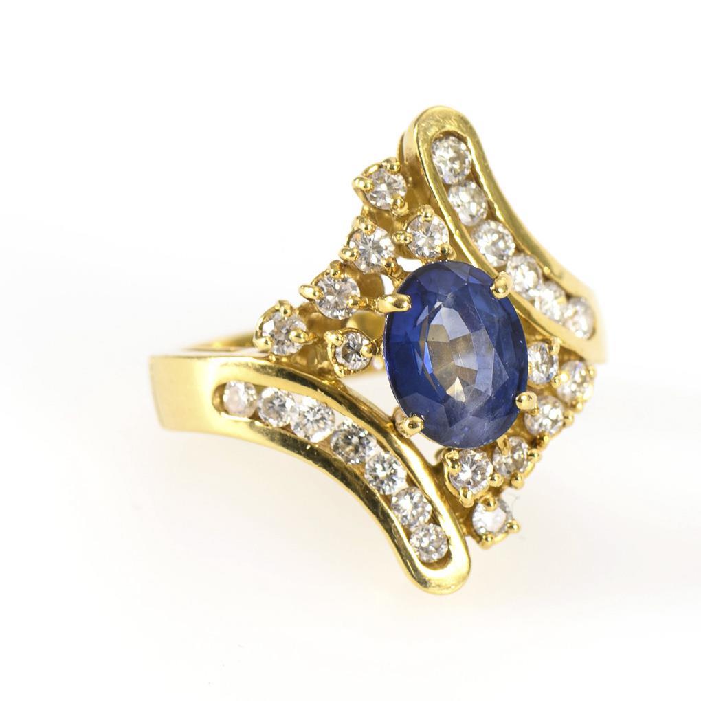 Gelbgold 750 gestempelt. Ringgröße 56. Saphir 9,1 x 6,8 mm..