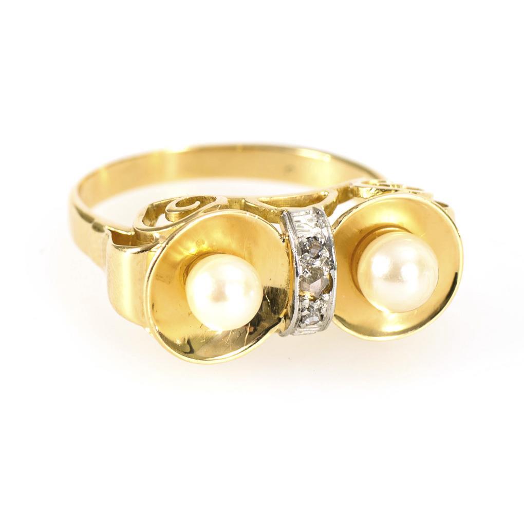Ring mit Akoya-Zuchtperlen und Diamantrosen.