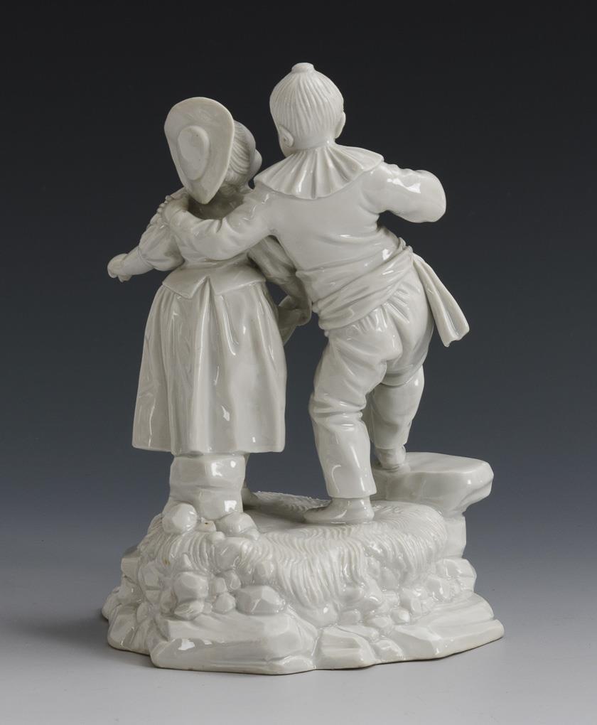 Kinderpaar als Harlekin und Bäuerin. Höchst.