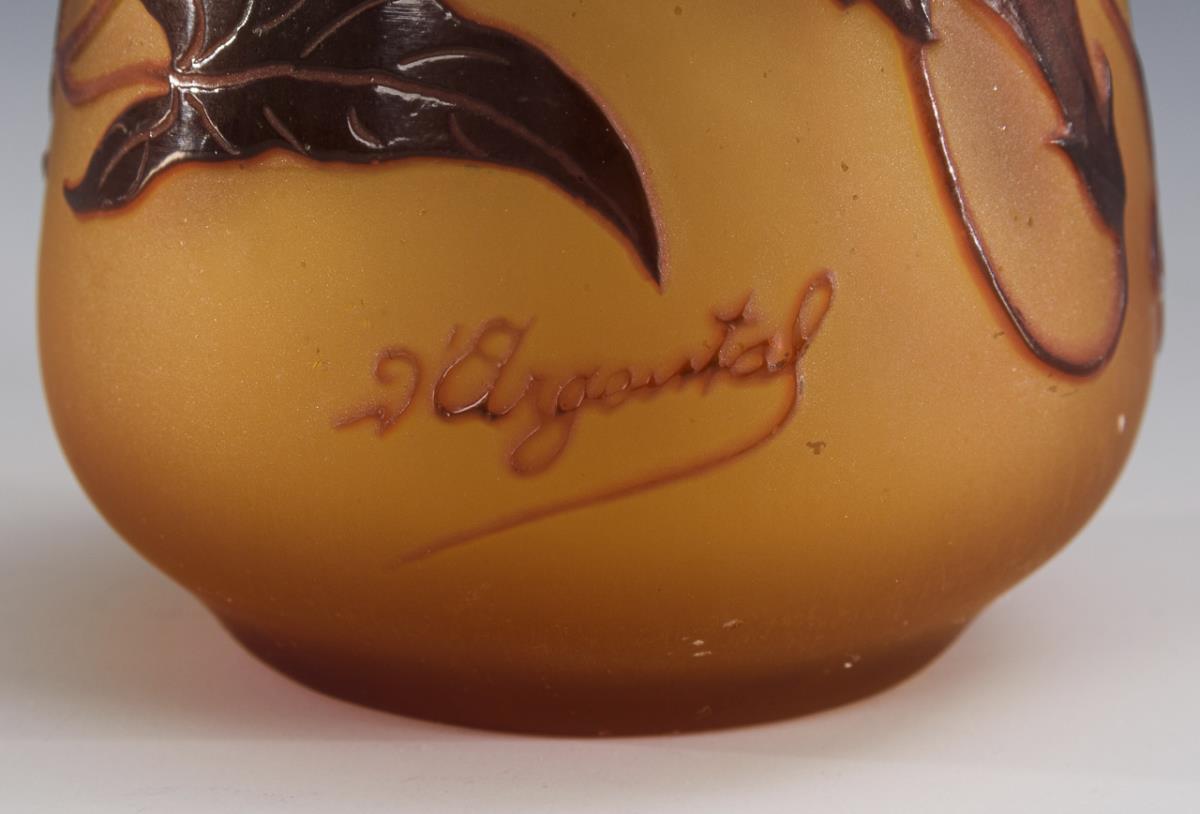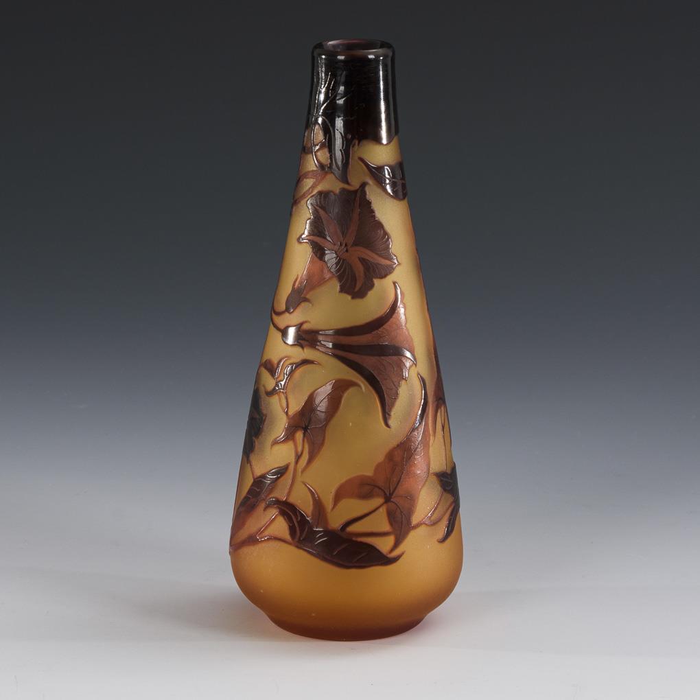 Konische Vase mit einem umlaufend geätzten Trichterwindendekor; ausgekugelter Abriss.