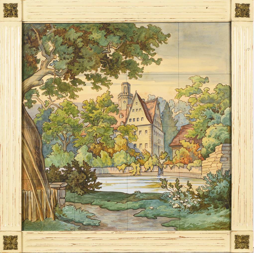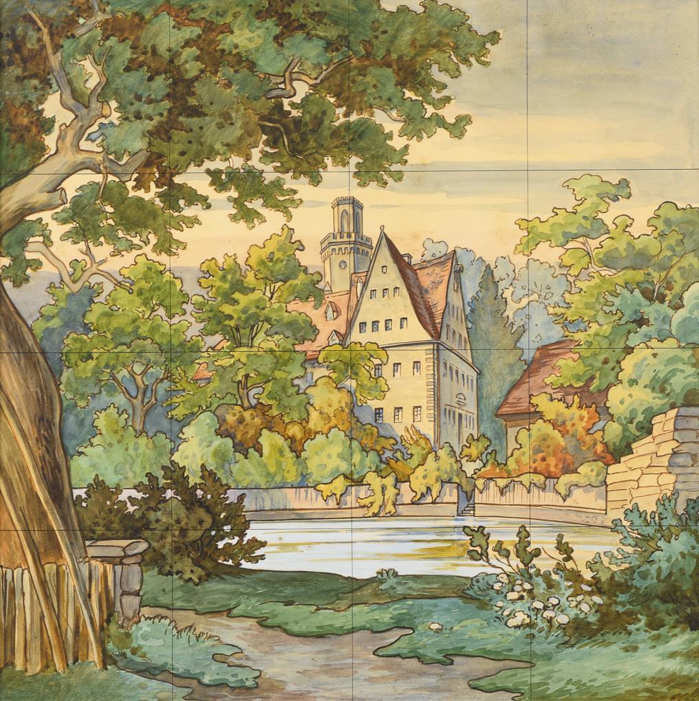 Unsigniert: Jugendstil-Entwurfsaquarell Schloss Poschwitz