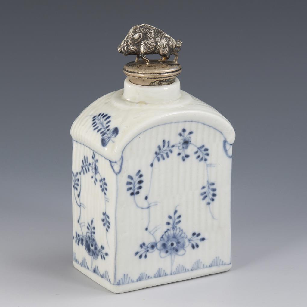 Rechteckige Dose mit gebrochen gerippter Wandung und Silberdeckel mit der Figur eines Wildschweines (925/Halbmond/Krone/Meisterzeichen gepunzt).