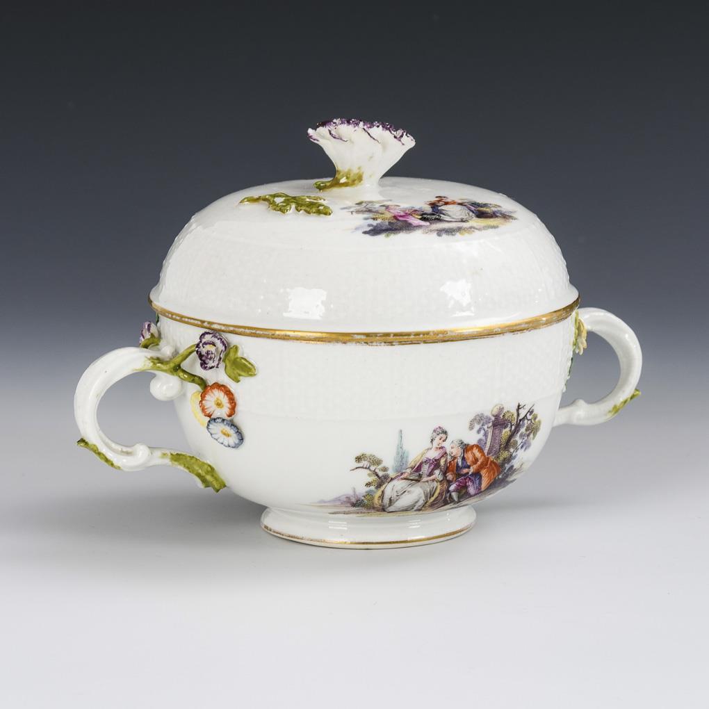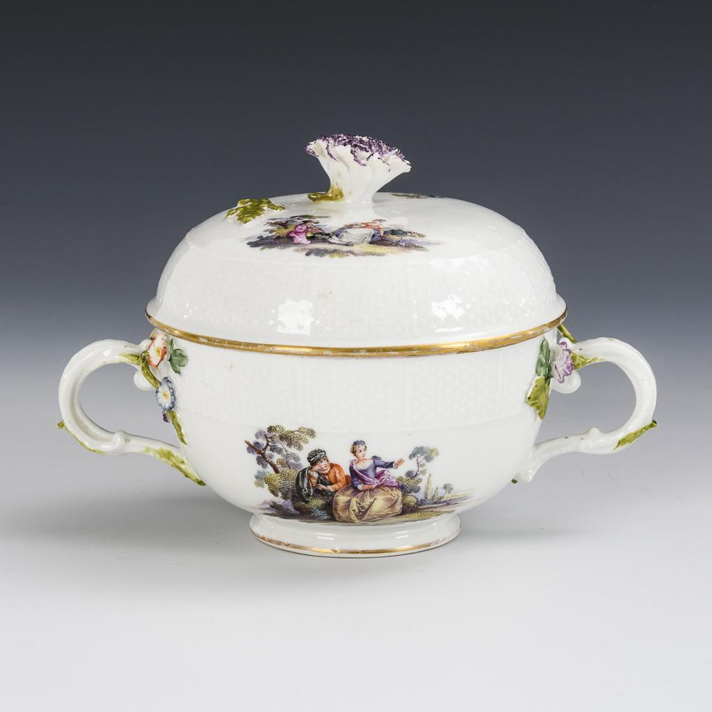 Barocke Wöchnerinnenterrine mit Watteau-Malerei. Meissen.