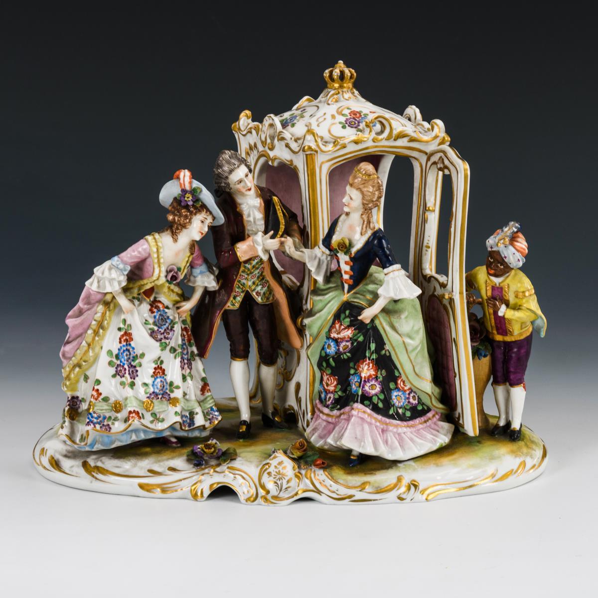 Rokokogruppe mit Sänfte. Müller & Co.