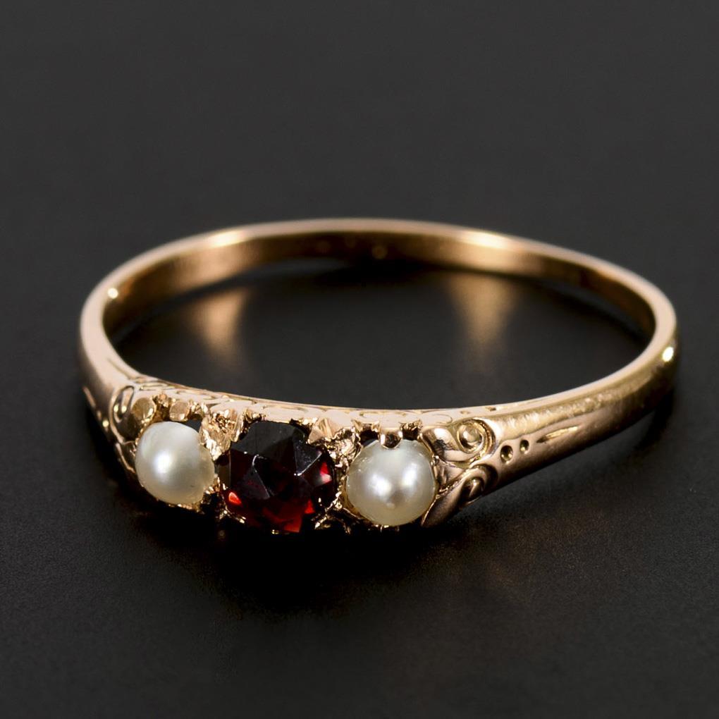 Granat und 2 Halbperlchen, zwischen schmaler Schiene.