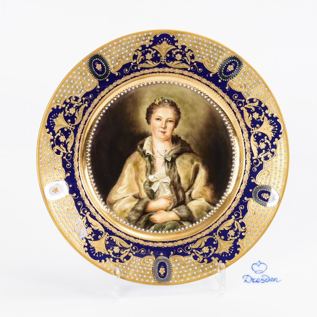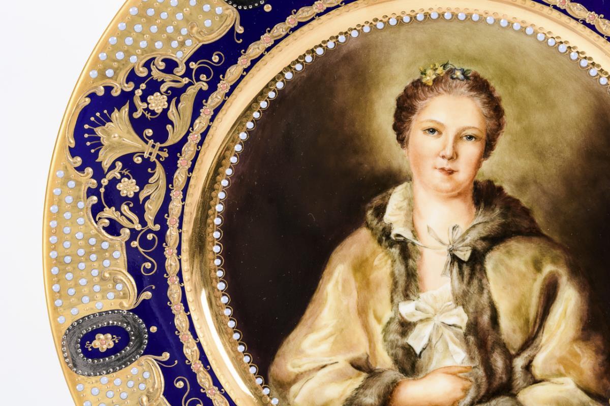 Porträtteller im Wiener Stil: Comtesse de Tillières. Dresden.