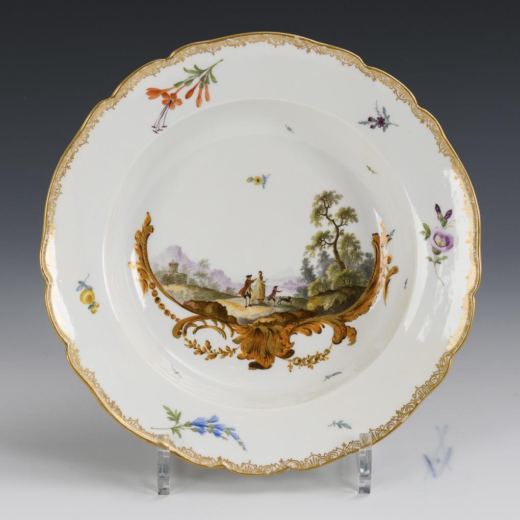 Barocker Suppenteller mit Landschaftsmalerei. Meissen.