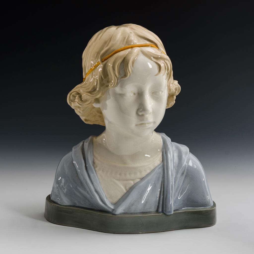 Büste eines Mädchens mit gelbem Haarband. Kleine Bestoßung am Sockel.
