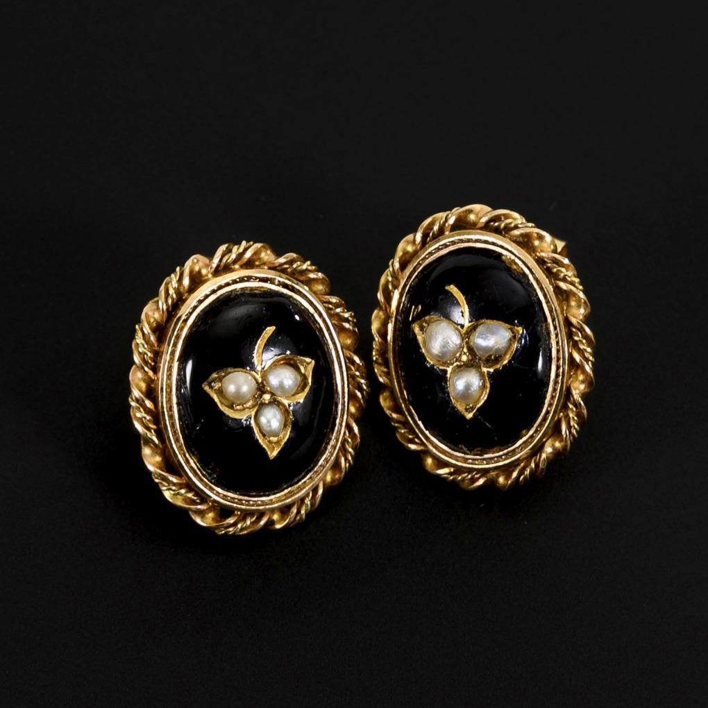 Ohrsteckerpaar mit Email und Perlchen, um 1900.