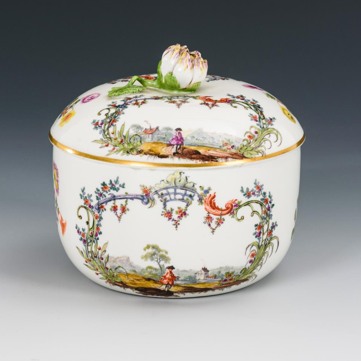 Zuckerdose mit Landschaftsmalerei. Meissen.