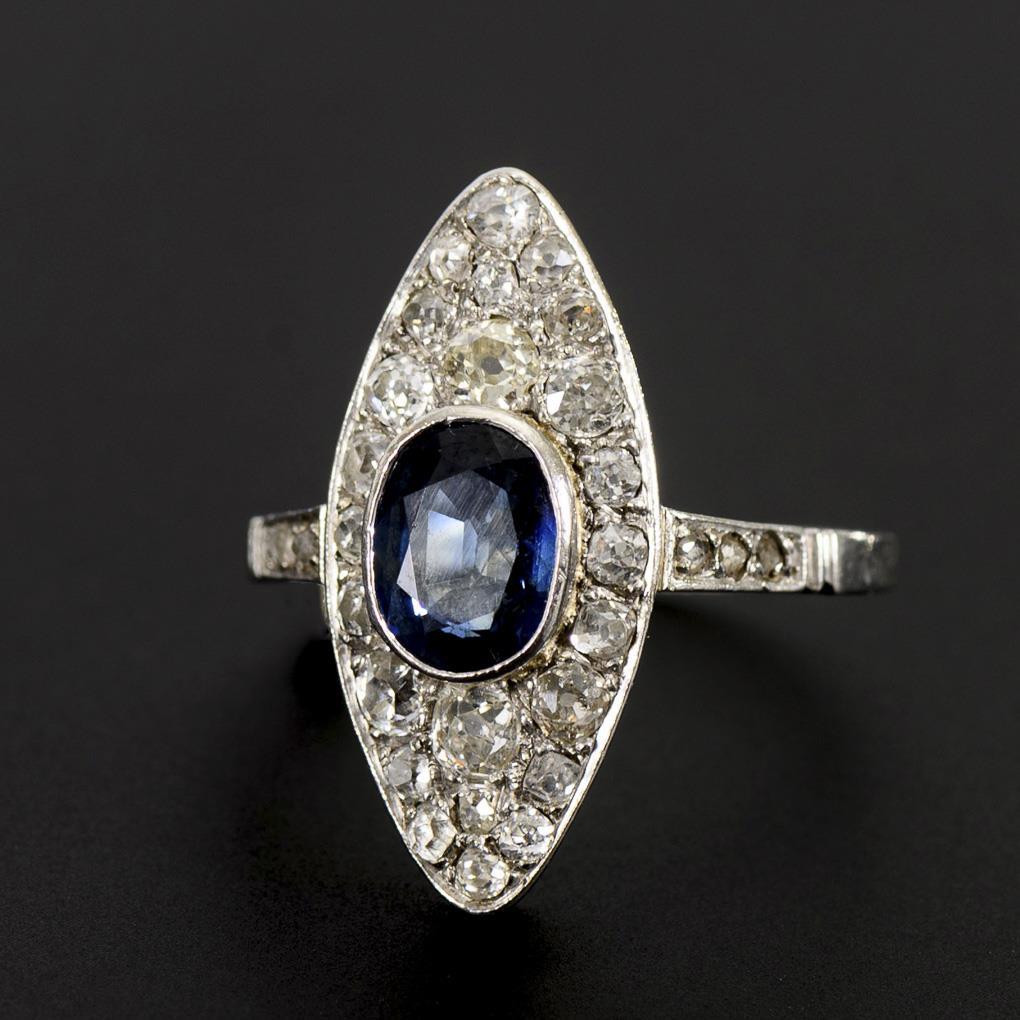 Art-déco-Ring mit Saphir und Altschliff-Diamanten.
