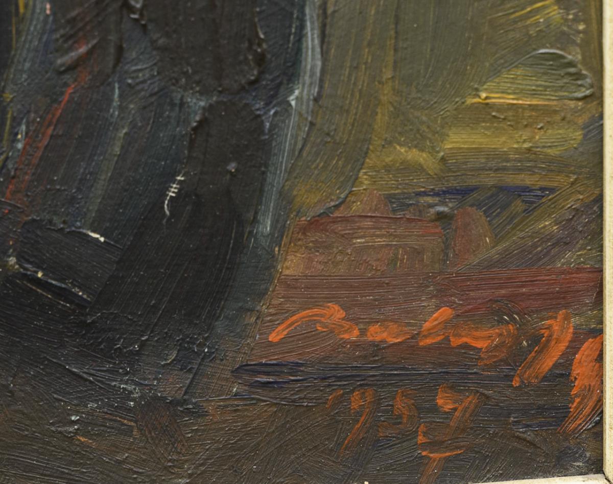 Öl/Leinwand. Rechts unten undeutlich signiert. 1957.