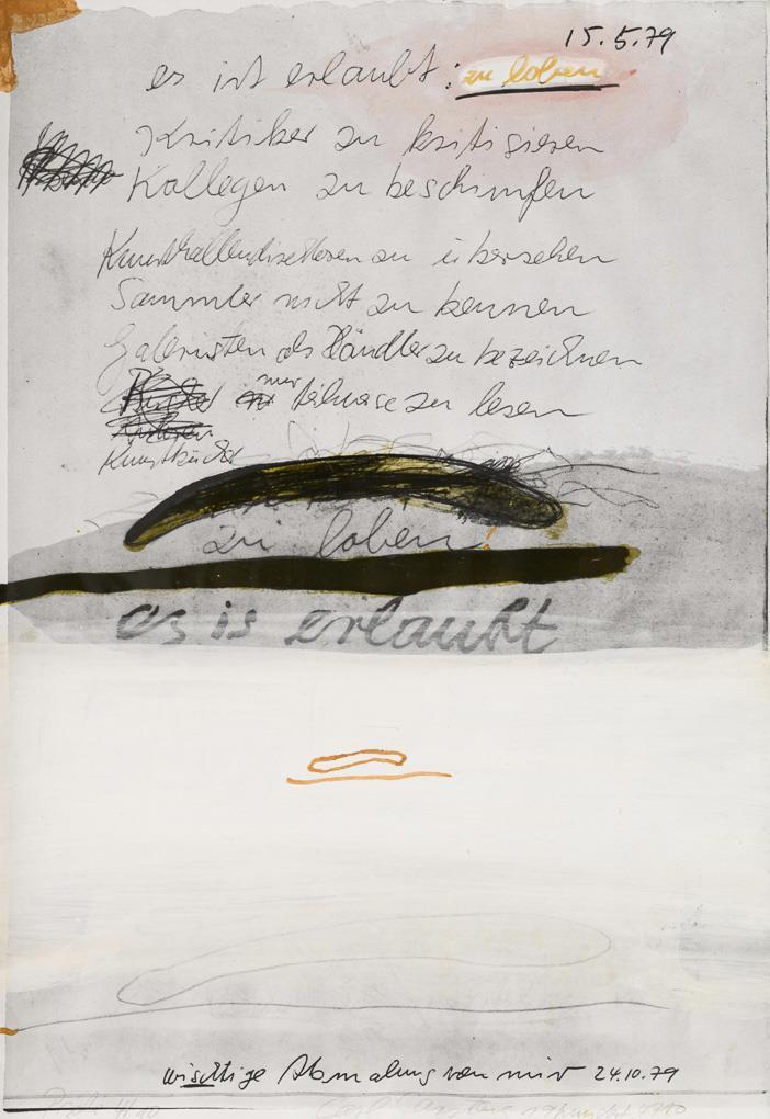 "Es ist erlaubt", 1979, Blatt: 61 x 42 cm, Probe 4/10, Bleistiftsignatur, verso fleckig, verso Stempel "I can't speak the Cologne dialect" | "Redudu Perletin", 1978, Blatt: 86 x 60,6 cm, Exemplar: 1 von 100, verso fleckig, Blatt knickspurig.