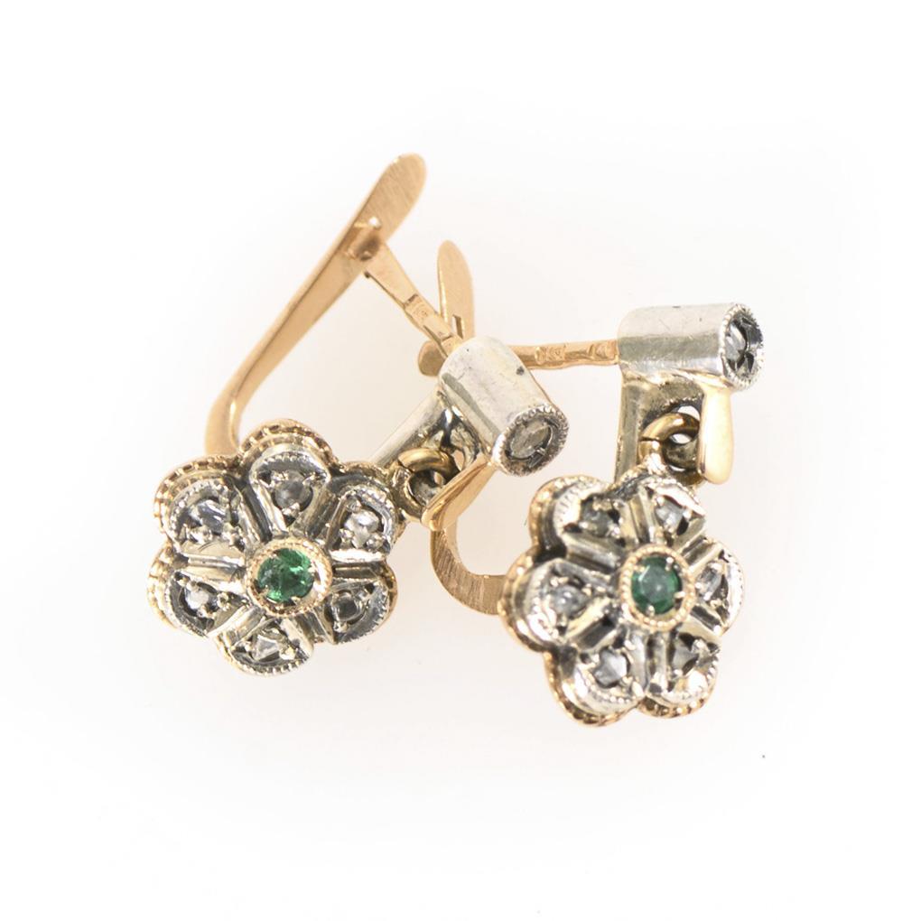 Ohrsteckerpaar mit Smaragden und Altschliff-Diamanten.