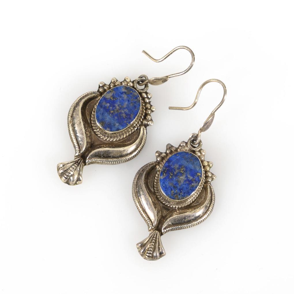 Ohrhängerpaar mit Lapislazuli.