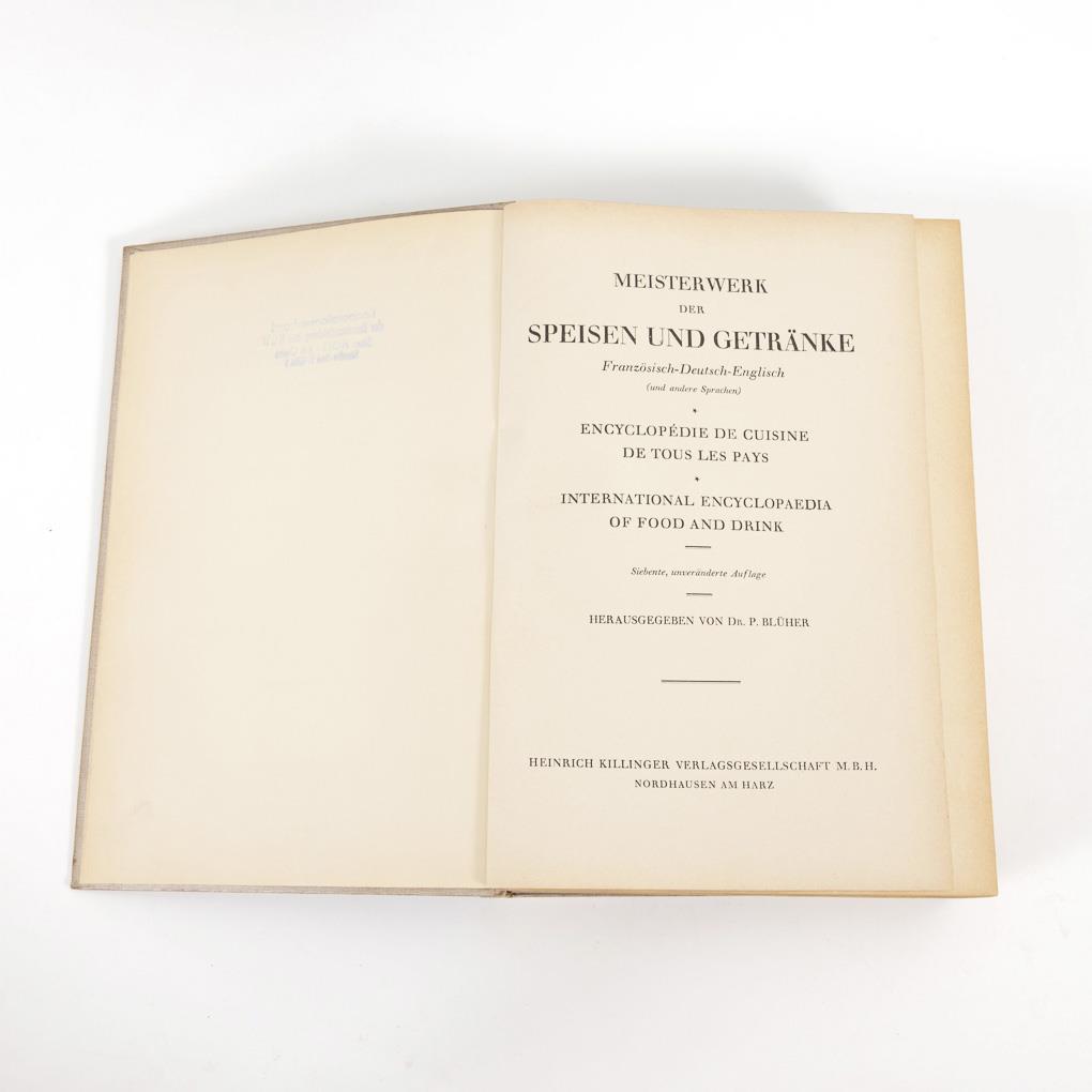 Naegele: "Moderne Menus und Recepte", Verlag von Küche und Keller, Hamburg, 232 Seiten. / Beutel: "Die moderne Küche", Heinrich Killinger, Kochkunstverlag, Leipzig und Nordhausen, 344 Seiten. / Blüher: 2 Bände "Meisterwerke der Speisen und Getränke". Französisch, Deutsch, Englisch. Heinrich Killinger Verlagsgesellschaft, 7. Auflage. Wörterbuch und Rezepte. / Blüher: "Rechtschreibung der Speisen und Getränke - Alphabetisches Fachlexikon, Deutsch, Französisch, Englisch u.a. 800 Seiten und Tafel. Alle Bände mit Gebrauchsspuren.