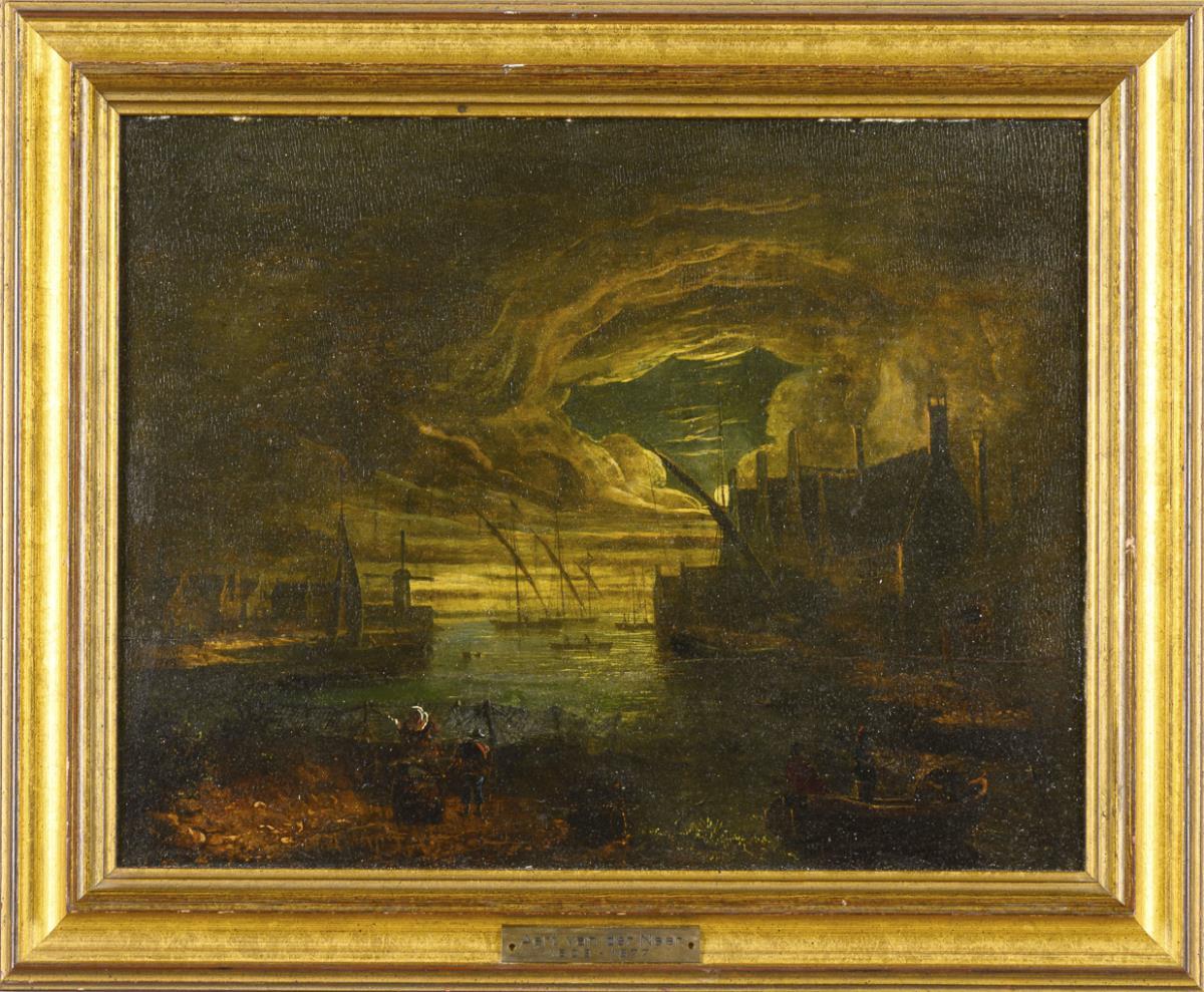 Niederländischer Maler: Küstenstadt bei Vollmond