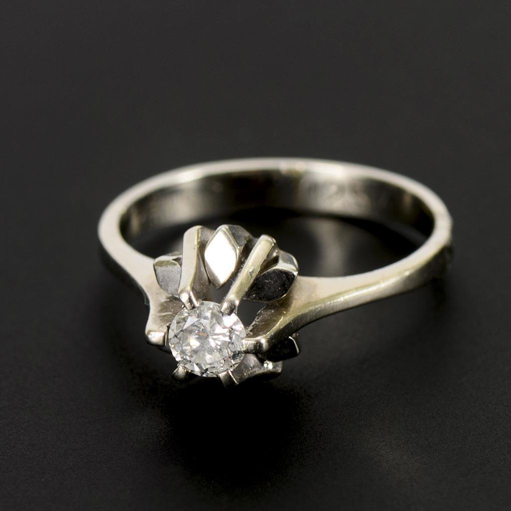 Weißgold 585 geprüft. Undeutlich gestempelt. Ringgröße 52. Brillant 0,25 ct/W/PI. 3,1 g.