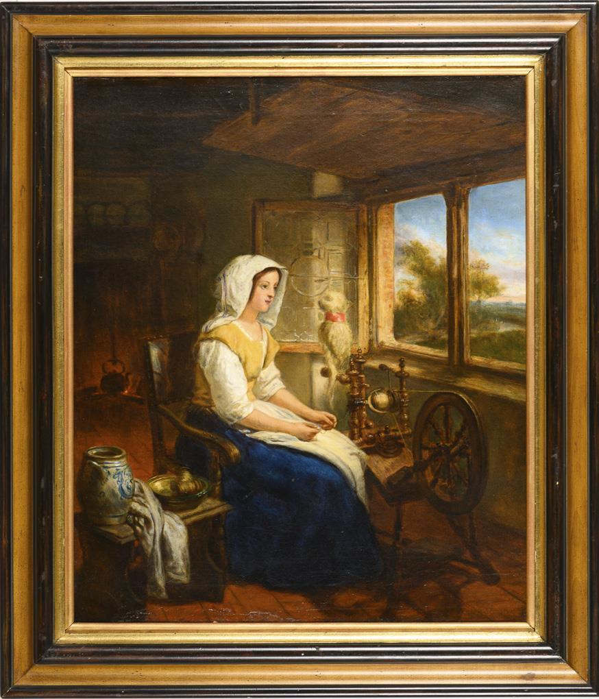 Unsigniert: Frau am Spinnrad