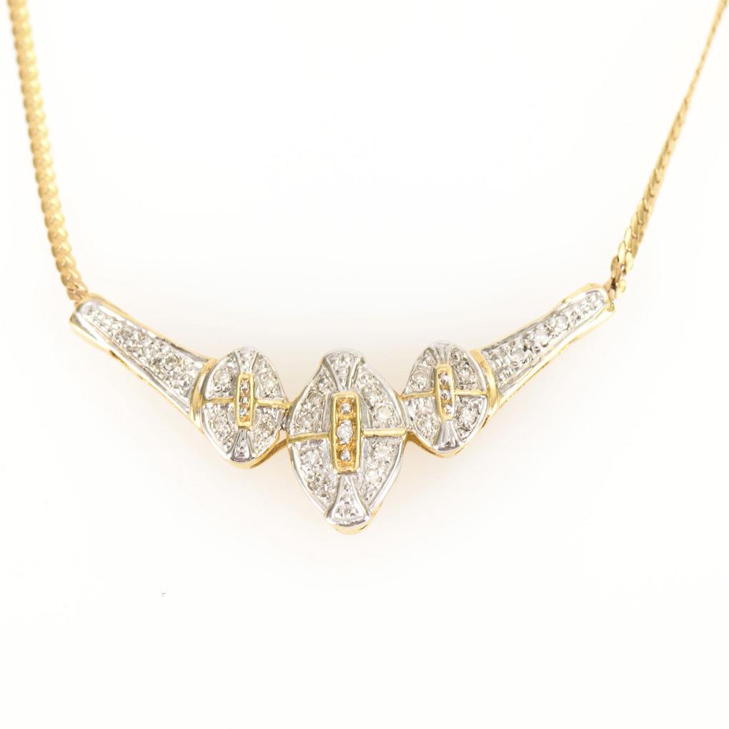 Gelbgold 585 gestempelt. L 45 cm. Diamanten gesamt ca. 0,25 ct. 5,6 g.
