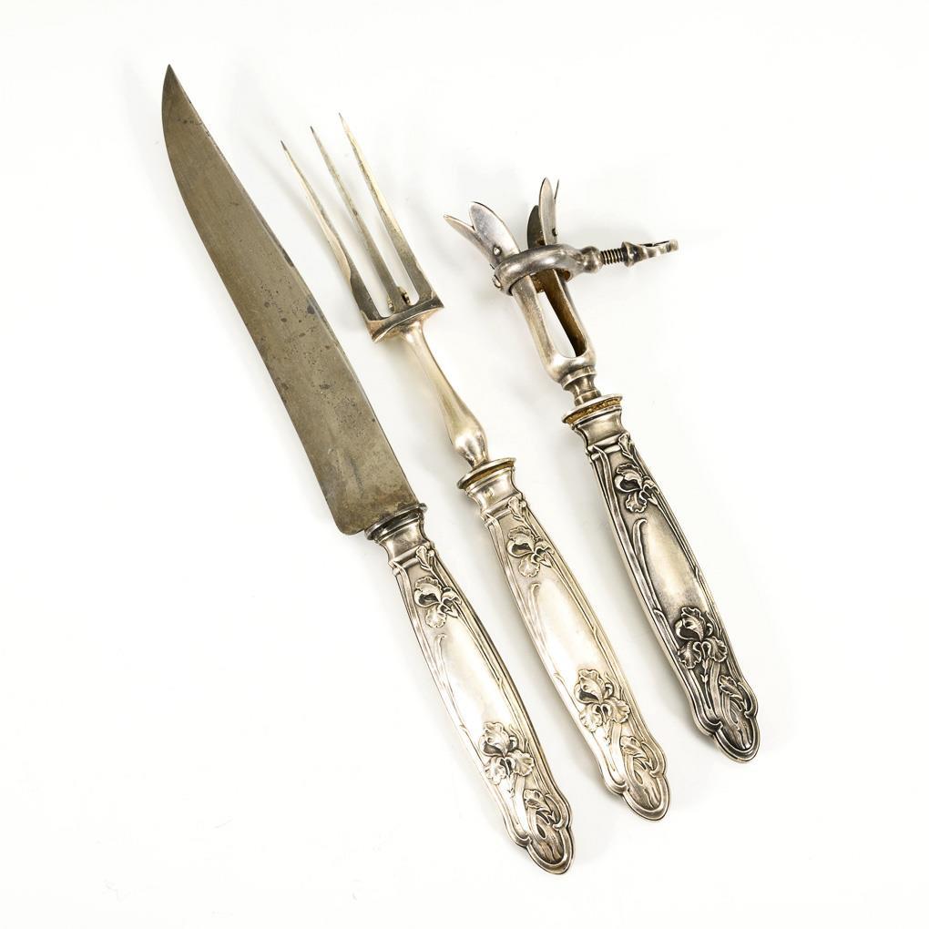 3-teiliges Jugendstil-Tranchierbesteck mit Silbergriffen.
