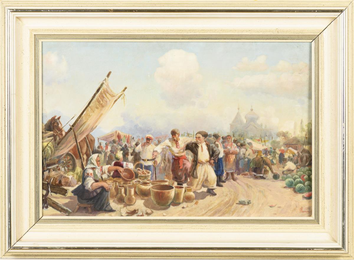 Undeutlich signiert: Ungarische Marktszene