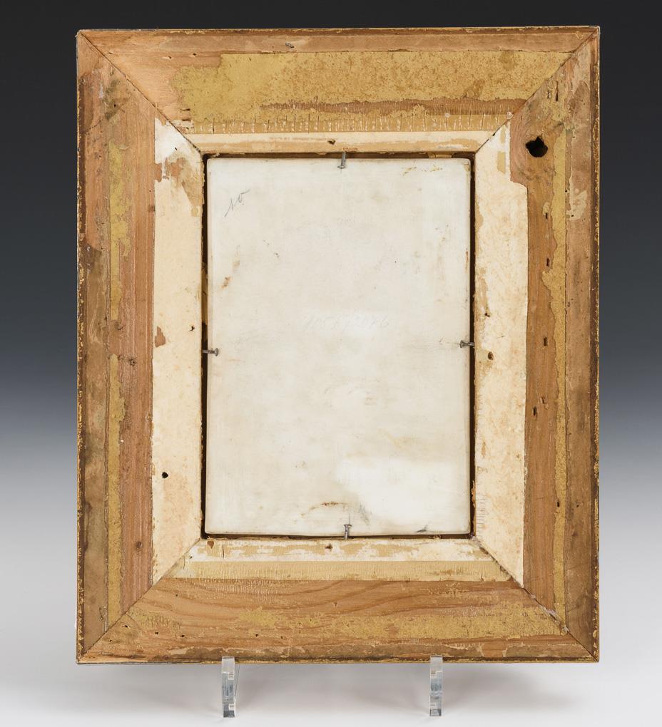 Polychrome Malerei über Vordruck. 19 x 13 cm, im Goldstuckrahmen (32 x 26 cm).