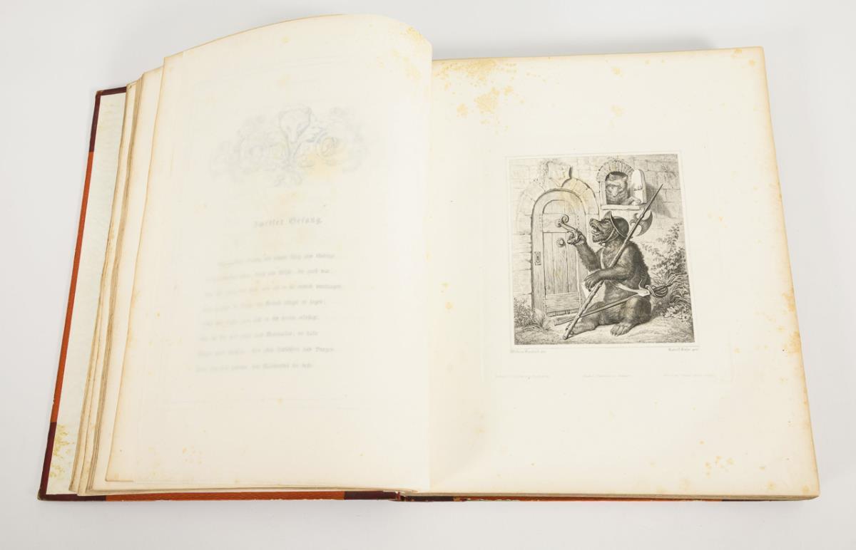 257 Textseiten mit Vignetten und 36 ganzseitigen Stahlstichen, sowie das Bildregister für den Buchbinder. Im roten Halbledereinband mit Goldschnitt. Block etwas stockfleckig. Unter Verwendung des alten Rückens jünger nachgebunden. Gebrauchsspuren.