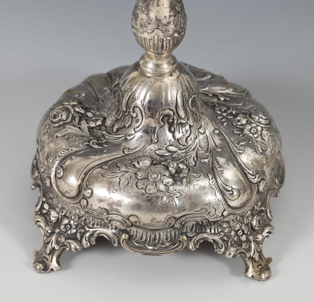 Paar reliefierte Silberleuchter. Adam Manns & Sohn, Doernigheim.
