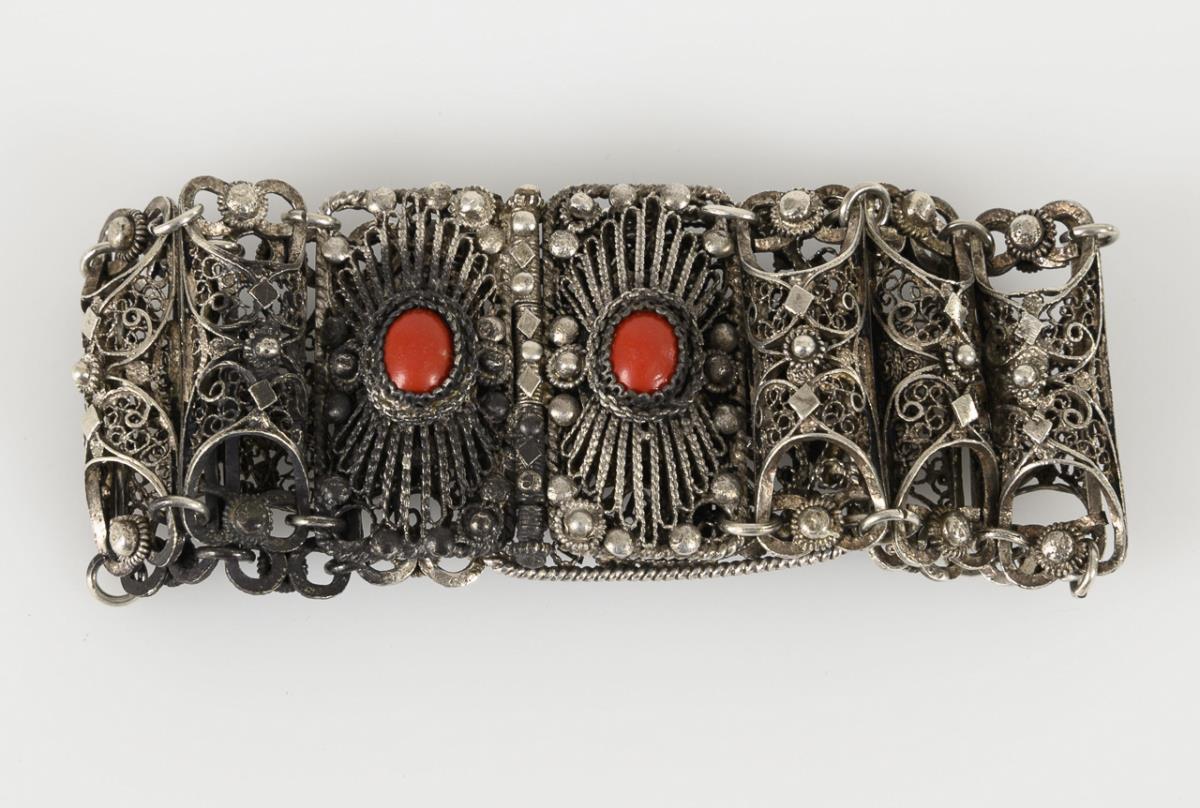 Filigranarmband und Ring mit Koralle.