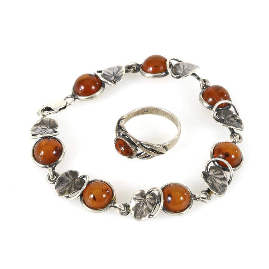 Armband und Ring mit Bernsteinen.