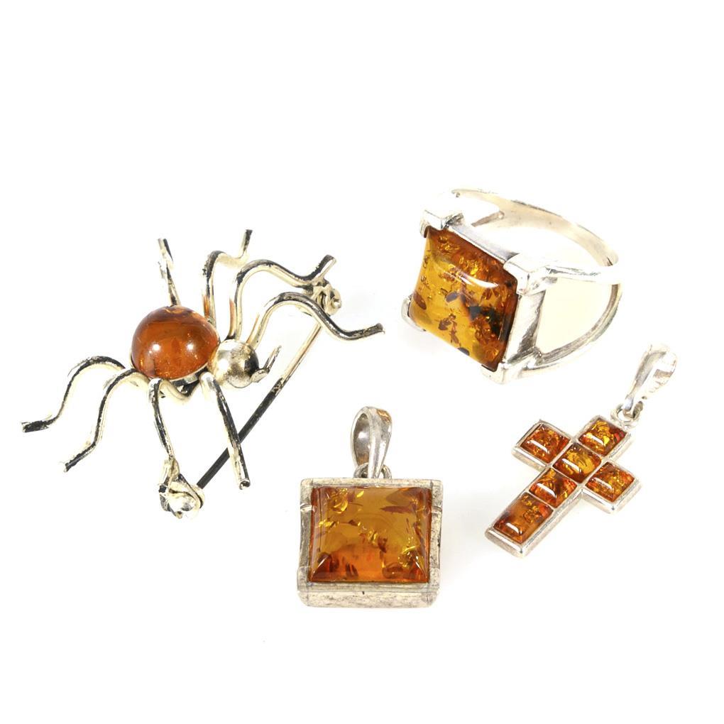 4 Schmuckstücke mit Bernsteinen.