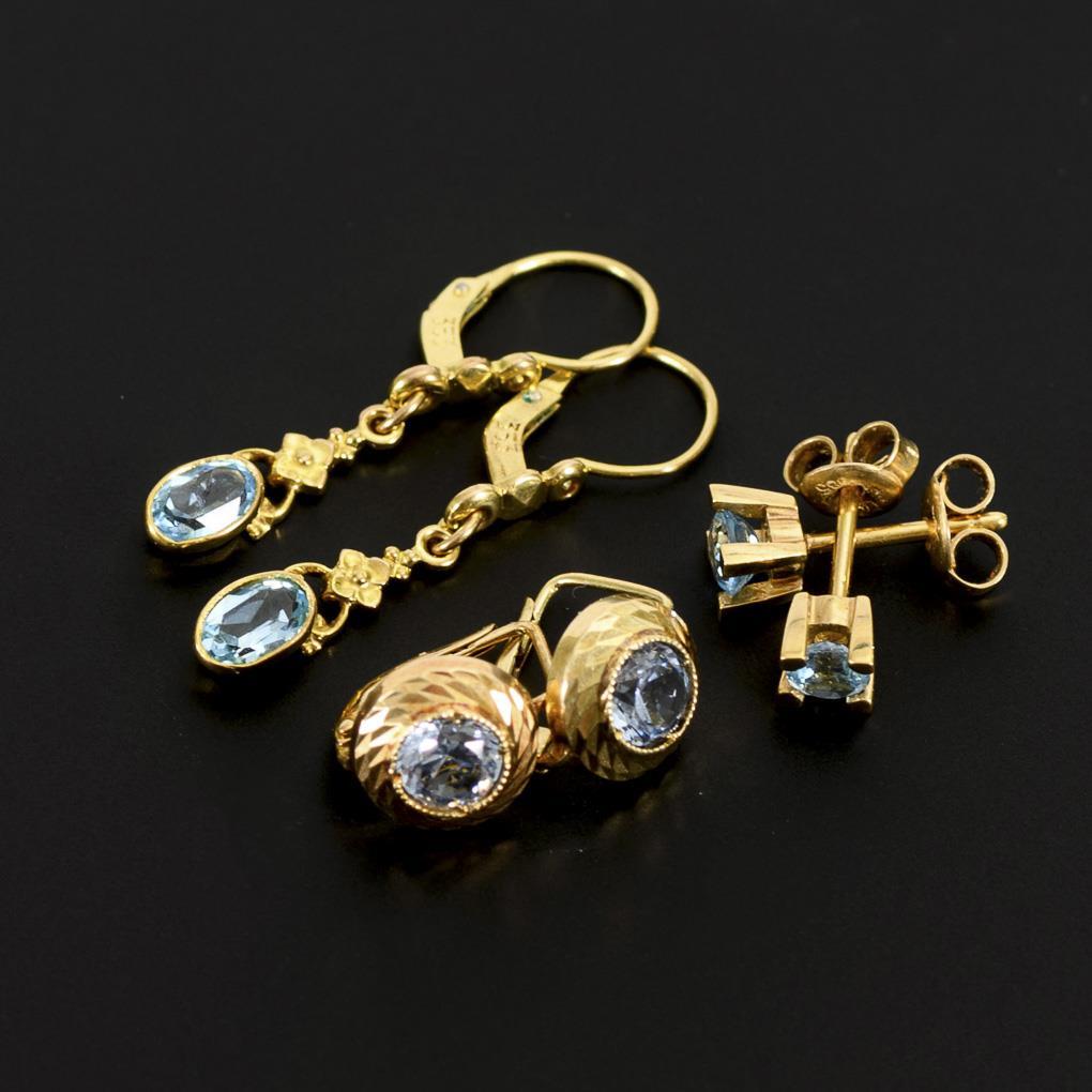 3 Ohrringpaare mit Farbsteinen und Imitationen.