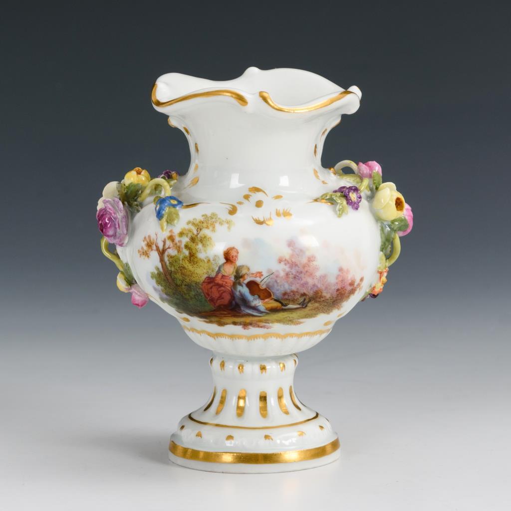 Kleine Vase mit Watteaumalerei